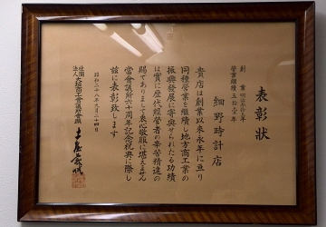 営業51年目の昭和28年には、大垣商工会議所から表彰されました