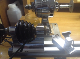 時計の部品を手作りするときに使います。アメリカンWW型旋盤という種類の旋盤です。米国のシカゴ市、マーシャル社製。