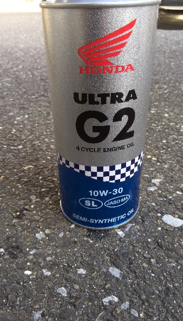 一年に一回くらいはオイル交換した方がいいと聞きますよね。交換用オイルは、4サイクル用なら何でもいいですが、私のおすすめは、ホンダ純正G2です。ホンダのベーシックオイルのG1と較べると、G1は鉱物油で、こちらは部分合成油なので、ワンランク上のオイルです。いろいろなオイルが市販されているので、毎回種類を変えて、自分のスーパーカブにあったオイルを探すのもバイクライフの楽しみの一つと思います。