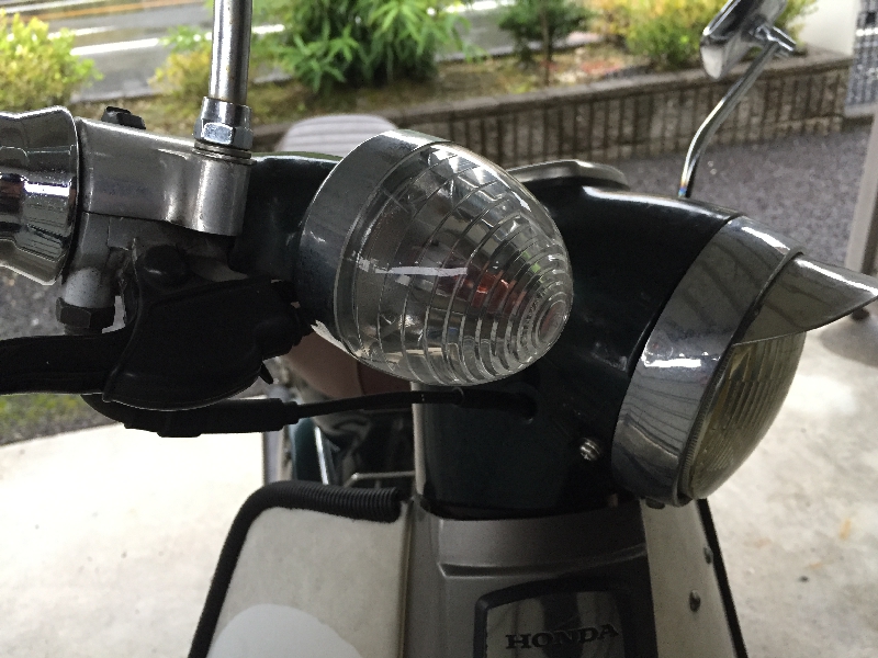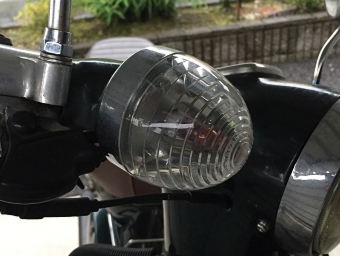 クリアカラーのウインカーレンズに交換した場合は、オレンジ色の着色がしてある電球に変えないといけません。忘れずに、電球も変えましょう。