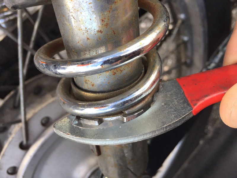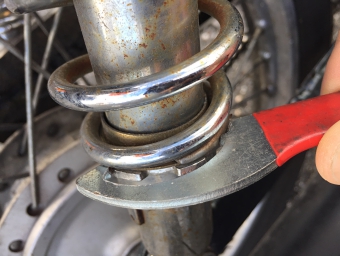 サスペンション調整用のフックを使って、減衰量を調整できるタイプを使用していました。フックをサスペンションの爪にひっかけて回すと、サスペンションの長さが変化しました。