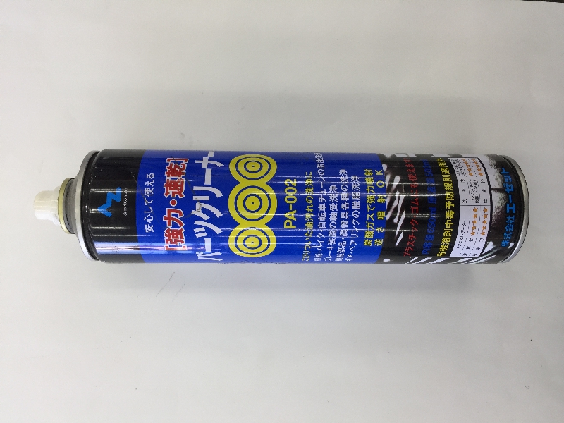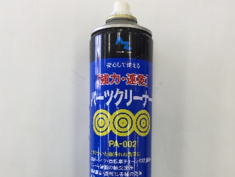 油汚れを落とすために使うのが、パーツクリーナです。缶に入ったガソリンをノズルから噴射して、高圧とガソリンの洗浄効果で油汚れを落とすことが出来ます。チェーンの油汚れの除去などに使います。パーツクリーナーを使ったあとのチェーンには、グリスアップを忘れずに。