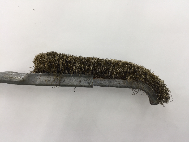 手っ取り早く錆を落としたいなら、真鍮ブラシは最適な選択です。錆びを落としたい部位にブラシ部分を強くこすりつけてください。真鍮は、鉄に較べ柔らかい材質なので、鉄に傷を付けることはありません。